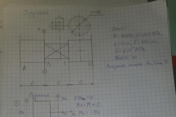 Типовой расчет по сопротивлению материалов №2, 1 задача: "Кручение", зачтено