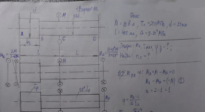 Типовой расчет по сопротивлению материалов №2, 1 задача: "Кручение", зачтено