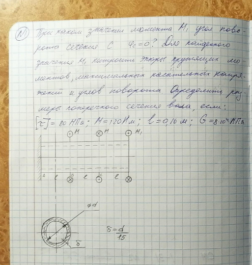 Типовой расчет по сопротивлению материалов №2, 1 задача: "Кручение", зачтено