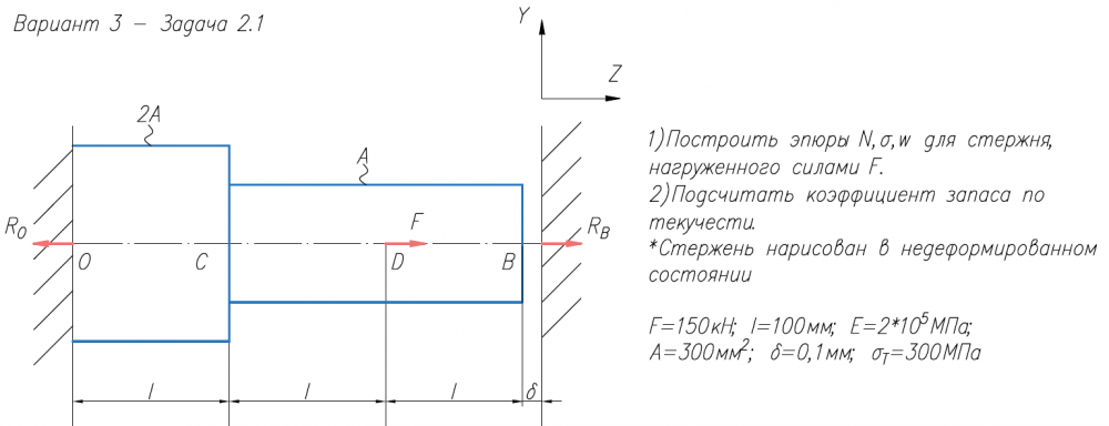 Для студентов МГТУ им. Н.Э.Баумана по предмету Сопротивление материаловЗадача 2.1Задача 2.1