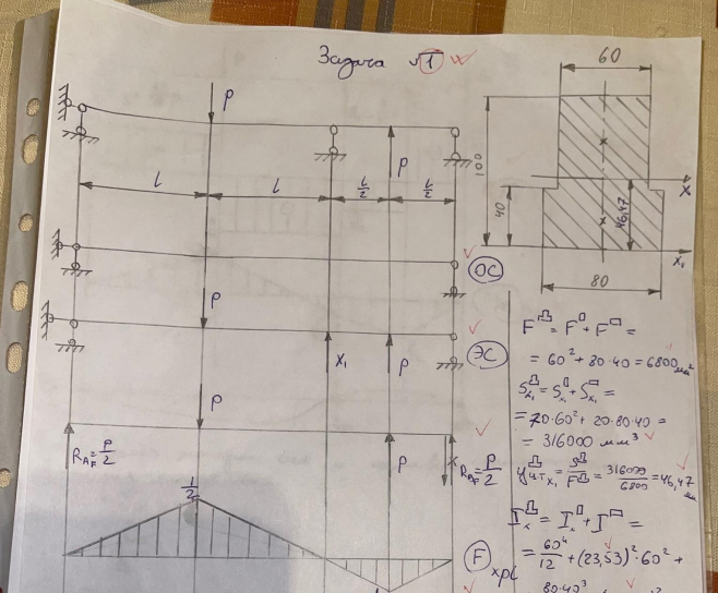 Домашнее задание №1, задача 1, "Статически неопределимые задачи изгиба", зачтено