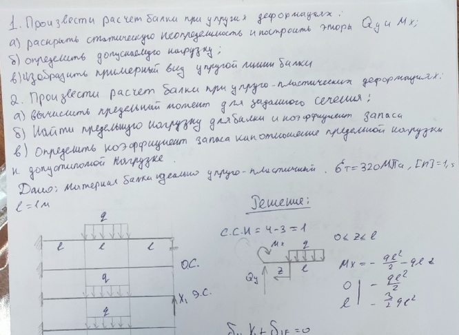 Домашнее задание №1, задача 2, "Статически неопределимые задачи изгиба", зачтено