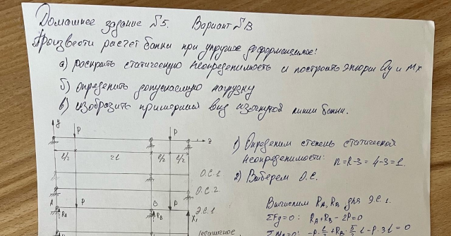 Домашнее задание №1, задача 5-1, "Статически неопределимые задачи изгиба", зачтено
