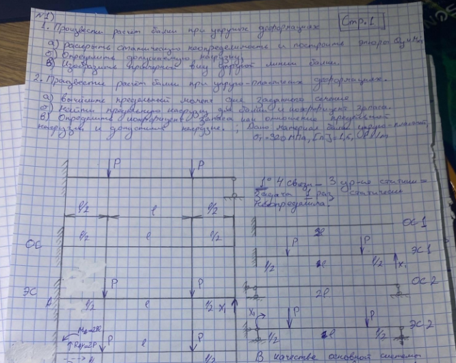 Домашнее задание №1, задача 1, "Статически неопределимые задачи изгиба", зачтено