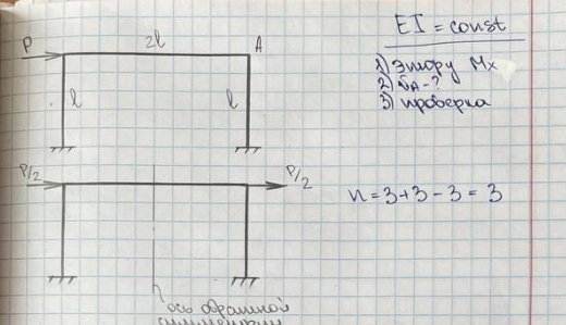 Домашнее задание №1, задача 2, "Статически неопределимые задачи изгиба", зачтено