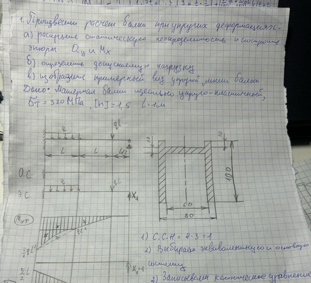 Домашнее задание №1, задача 2, "Статически неопределимые задачи изгиба", зачтено