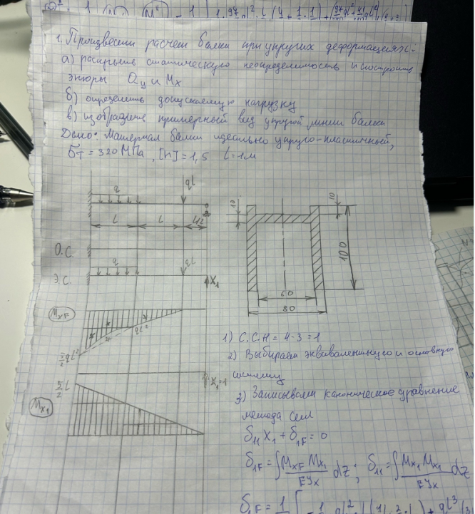 а) Раскрыть статическую неопределимость и построить эпюры Qy и Mx