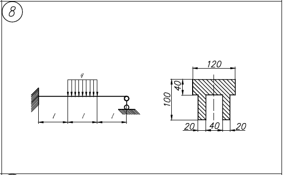 1)Произвести расчет балки при упругих деформациях: а)раскрыть статическую неопределимость и построить эпюры Q/y и M/x; б)определить допускаемую нагрузку; в)изобразить примерный вид упругой линии балки. 2)Произвести расчет балки при упруго-пластических деформациях: а)вычислить предельный момент для заданного сечения; б)найти предельную нагрузку для балки и коэффициент запаса; в)определить коэффициент запаса как отношение предельной нагрузки к допустимой нагрузке. Дано: материал балки идеально упруго-пластичный; σ/Т=320МПа; [n]=1,5; l=1м.