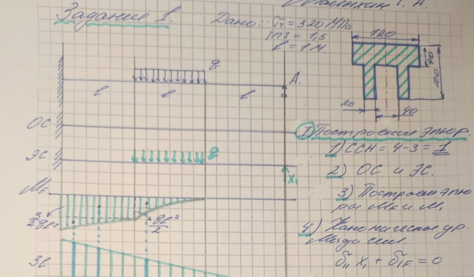 Домашнее задание №1, задача 1, "Статически неопределимые задачи изгиба", зачтено