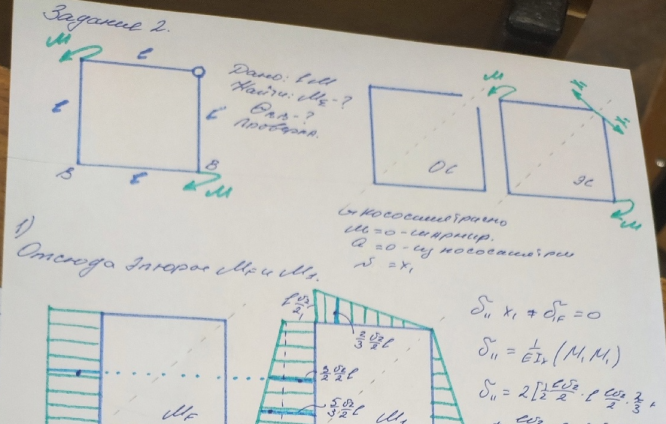 Домашнее задание №1, задача 2, "Статически неопределимые задачи изгиба", зачтено