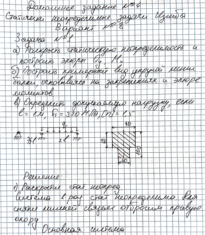 Вариант 8 - ДЗ №1 - "Статически неопределимые задачи изгиба" - Задача 1