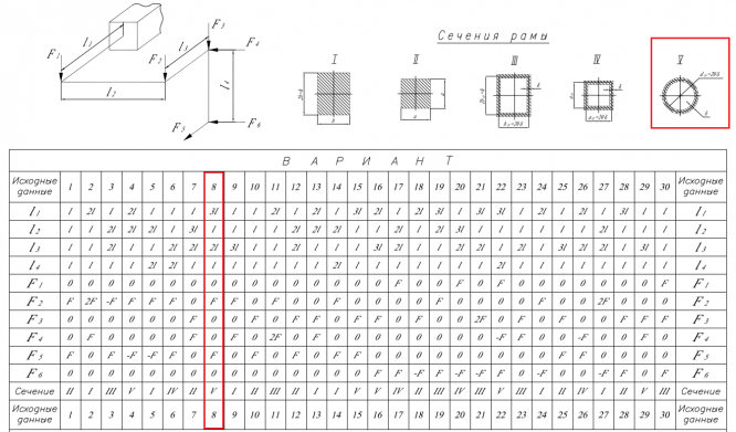 Вариант 8 - ДЗ №2 - "Расчет на прочность" - Задача 1