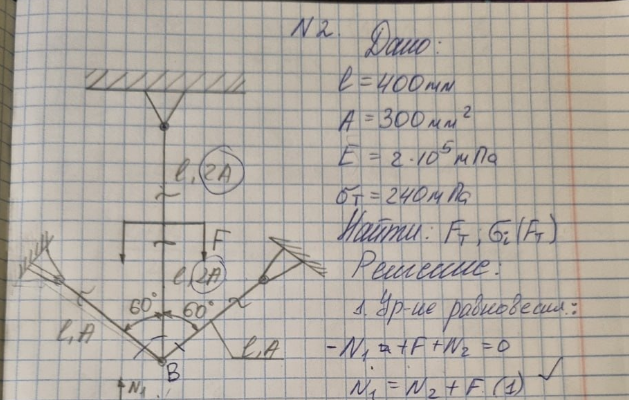 Типовой расчет по сопротивлению материалов №2, 1 задача: "Растяжение — сжатие", зачтено