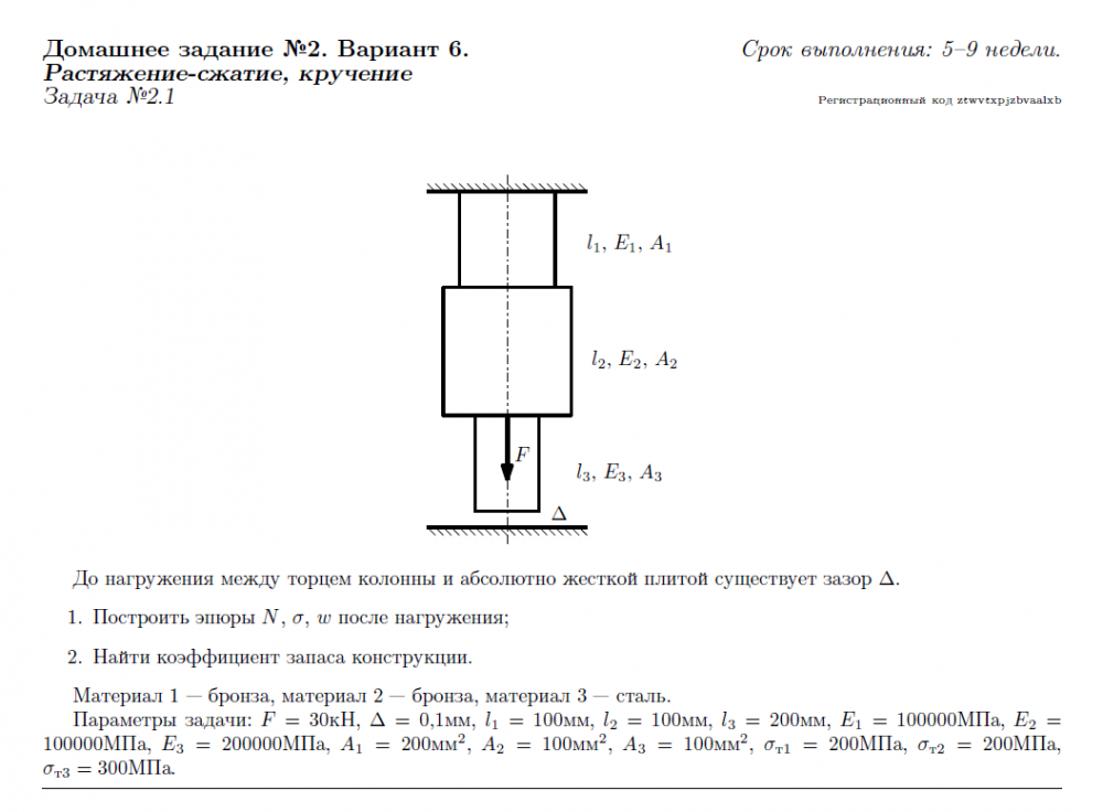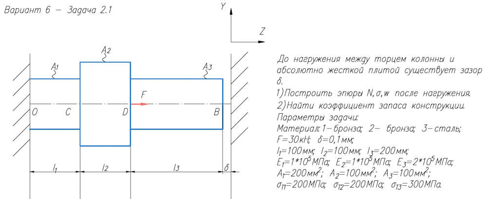 Для студентов МГТУ им. Н.Э.Баумана по предмету Сопротивление материаловЗадача 2.1Задача 2.1