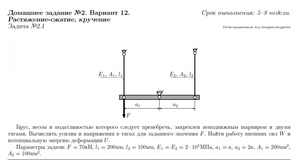 Для студентов МГТУ им. Н.Э.Баумана по предмету Сопротивление материаловЗадача 2.1Задача 2.1