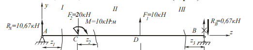 Задача: Для заданной двухопорной балки построить эпюры внутренних силовых факторов