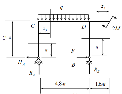 Для студентов по предмету Сопротивление материаловОпределение внутренних усилий в рамеОпределение внутренних усилий в раме