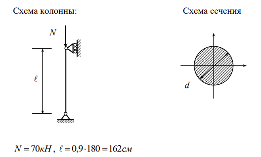 Требуется: подобрать размеры поперечного сечения для двух задач а) стержень сплошного круглого поперечного сечения (материал сосна с adm 10МПа ) с расчётной схемой в виде шарнирно опертого стержня. б) стержень из двух прокатных швеллерных профилей (материал сталь с adm 160МПа ) с расчётной схемой в виде консольного стержня.