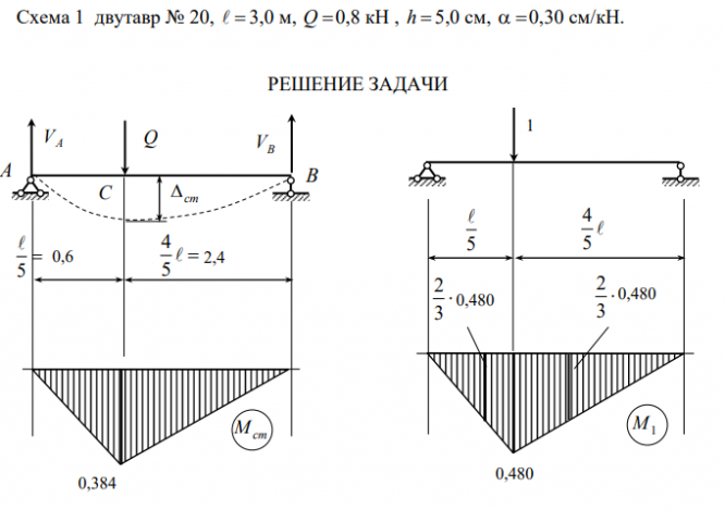 На стальную двутавровую балку с высоты h падает груз Q . Требуется: 1. Найти наибольшие нормальные напряжения, возникающие в балке в момент удара. 2. Решить аналогичную задачу условии, что правая абсолютно жесткая опора заменена упругой с коэффициентом податливостью . 3. Сравнить полученные результаты.