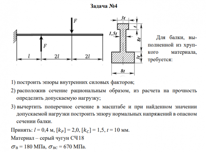Задача: Для балки, выполненной из хрупкого материала, требуется:
