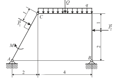 Задача: Применяя принцип возможных перемещений определить реакции опор составной конструкции