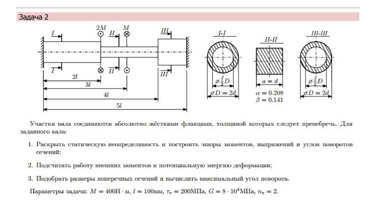 Задача: Участки вала соединяются абсолютно жёсткими фланцами, толщиной которых следует пренебречь