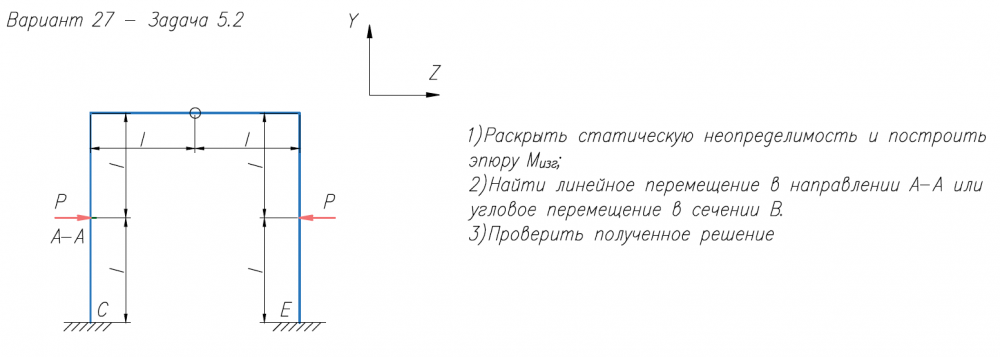 Для студентов МГТУ им. Н.Э.Баумана по предмету Сопротивление материаловЗадача 5.2Задача 5.2
