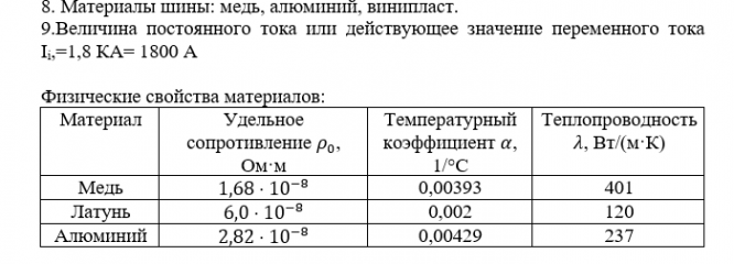 Задание: рассчитать предельное значение плотности постоянного и переменного тока в шине для трех металлов: меди, латуни, алюминия. Расчет провести двумя методами:
