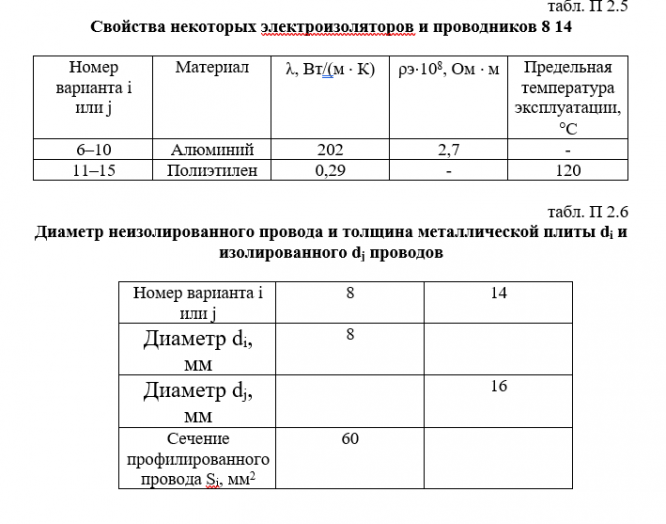 Главная » Учебные материалы » Сопротивление материалов » Решения задач » Несколько классов/семестров » По электрическом проводу, выполненному из материала Пi диаметром di, покрытому электроизоляционным материалом Иj диаметром dj, протекает постоянный ток