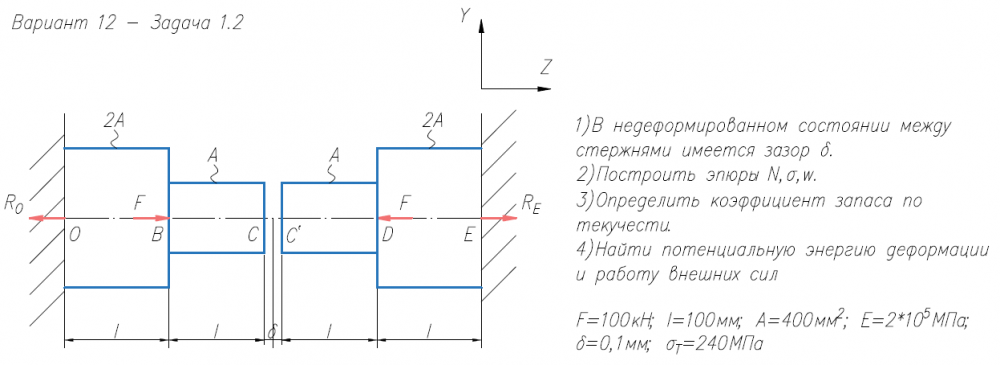 Для студентов МГТУ им. Н.Э.Баумана по предмету Сопротивление материаловЗадача 1.2Задача 1.2