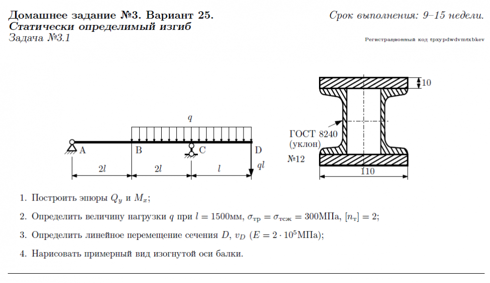 Для студентов МГТУ им. Н.Э.Баумана по предмету Сопротивление материаловЗадача 3.1Задача 3.1