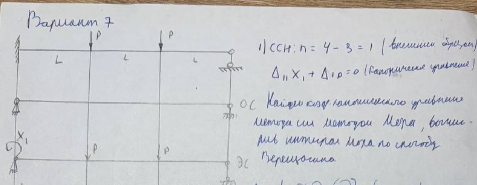 Правильно решенная задача 7 вариант с проверкой и расчетом нагрузки. Проверка путем врезания шарнира. Приняла Полякова