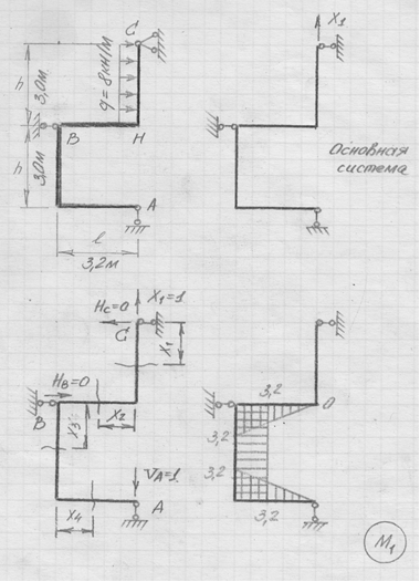 l=3,2 м; h=3 м; q=8 кН/м; k=1,2.