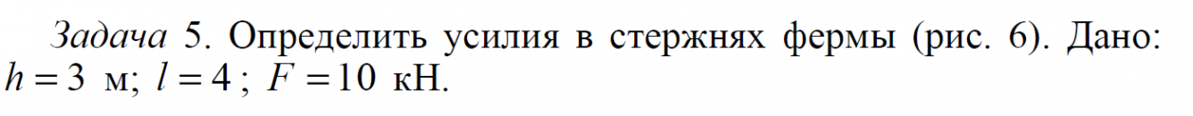 Задача 5: Задача 5. Определить усилия в стержнях фермы
