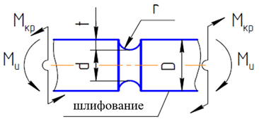 Схема концентратора – выточка круглая t=0,5(D-d);