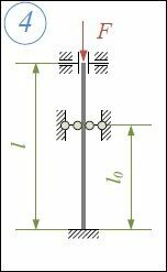 Энергетическим способом и способом интегрирования ДУ изгиба определить коэффициент приведения длины стойки. Сечение считать постоянным по длине. 2. Определить размеры поперечного сечения стойки (а, D или № сечения по ГОСТ) с помощью коэффициентов понижения напряжений (см. следующую стр.), если: F= 200 кН, l=3 м, материал стойки сталь 3, допускаемое напряжение на сжатие [сж] = 160 МПа. Примечание: варианты задания определяются тремя цифрами abc: a - схема закрепления и нагружения стойки, b - тип поперечного сечения, c - соотношение длин /. Размер сечения округляем в большую сторону до целых мм. Энергетическим методом или путём интегрирования дифференциального уравнения изгиба определить коэффициент приведения длины стойки постоянного поперечного сечения.