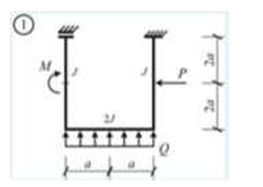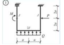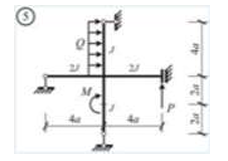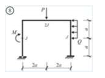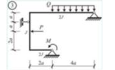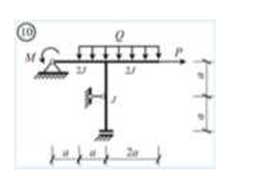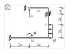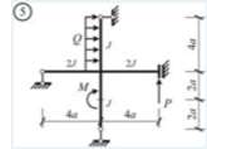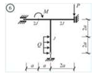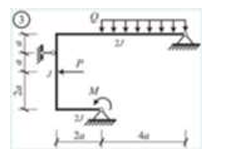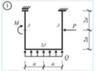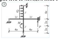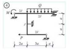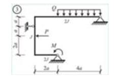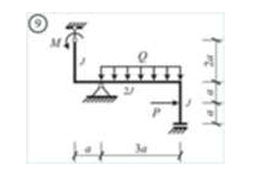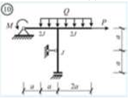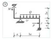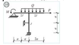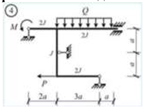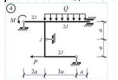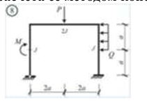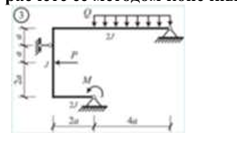 Сколько характерных сечений, в которых изгибающий момент не равен нулю, имеет заданная расчетная схема рамы (на участке с распределенной нагрузкой взять 3 характерных точки)