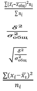 Внутригрупповая дисперсия B. Межгрупповая дисперсия C. Эмпирическое корреляционное отношение D. E. F. Установите соответствие вида дисперсии и ее характеристики: A. Общая дисперсия (σ2) B. Внутригрупповая дисперсия (σ 2) C. Межгрупповая дисперсия (δx2) D. характеризует вариацию признака по всей совокупности как результат влияния всех факторов, определяющих индивидуальные различия единиц совокупности E. отражает случайную вариацию, т.е. ту часть вариации признака, которая обусловлена действием всех прочих неучтенных факторов, кроме фактора, по которому осуществлялась группи....