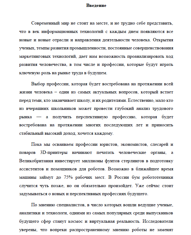 Курсовая работа: Профессии будущего в рамках инновационного развития