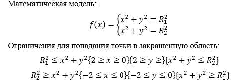 Составить алгоритм для определения, попадает ли точка с произвольно заданными координатами (х, у) в область, закрашенную на рисунке серым цветом. Координаты точки (х, у) и другие необходимые данные задать самостоятельно. В алгоритме отделить ввод данных, определение попадания точки в область и вывод соответствующего сообщения.