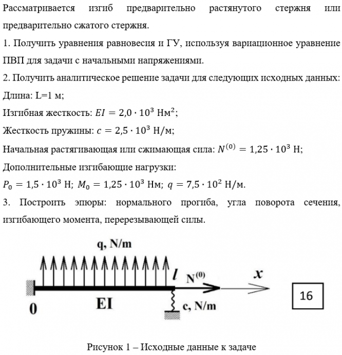 ДЗ 2: Изгиб предварительно растянутого/сжатого стержня вариант 16
