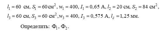 1. Рассчитать магнитную цепь методом двух узлов.
