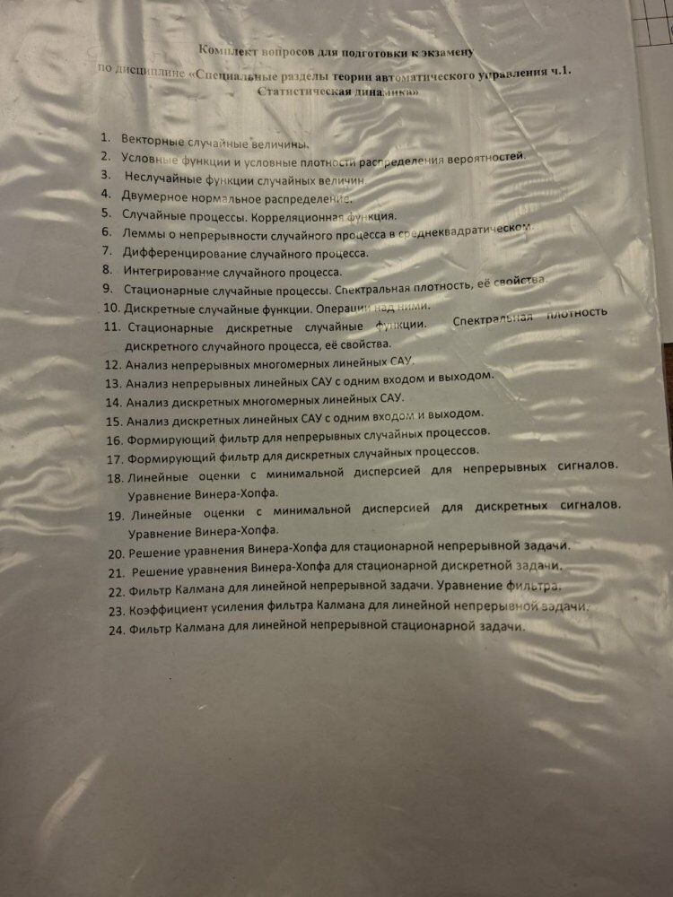 Для студентов МГТУ им. Н.Э.Баумана по предмету Специальные разделы теории автоматического управления (ТАУ)Ответы на вопросы к экзаменуОтветы на вопросы к экзамену