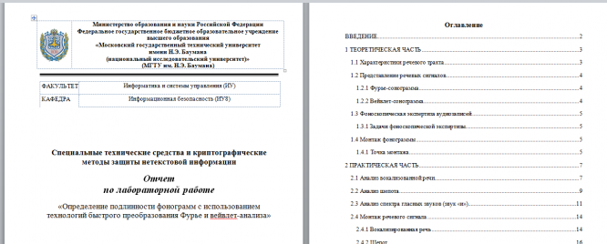 Для студентов МГТУ им. Н.Э.Баумана по предмету Специальные технические средства и криптографические методы защиты нетекстовой информацииОпределение подлинности фонограмм с использованием технологий быстрого преобразования Фурье и вейвлет-анализаОпределение подлинности фонограмм с использованием технологий быстрого преобразования Фурье и вейвлет-анализа