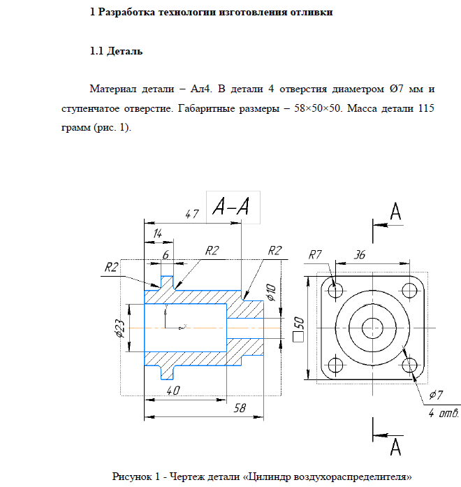 Для студентов МГТУ им. Н.Э.Баумана по предмету Специальные виды литьяТехнология изготовления отливки "Цилиндр воздухораспределителя"Технология изготовления отливки "Цилиндр воздухораспределителя"