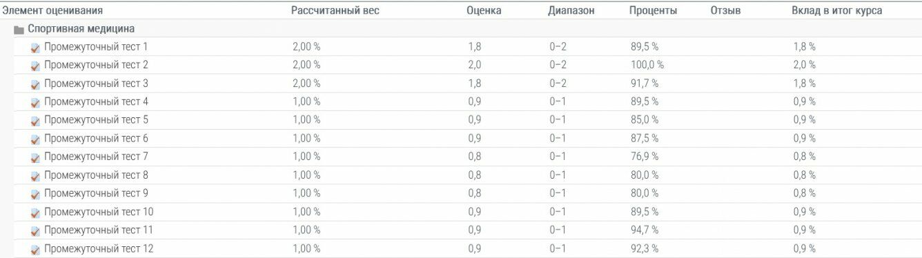 Сборник ответов к промежуточным тестам Спортивная медицина РОСДИСТАНТ (Промежуточные тесты 1-12).