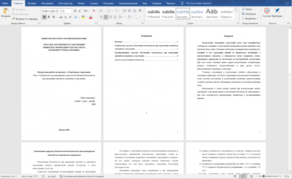 Реферат: Технические и организационные средства обеспечения безопасности при проведении занятий на спортивном сооружении