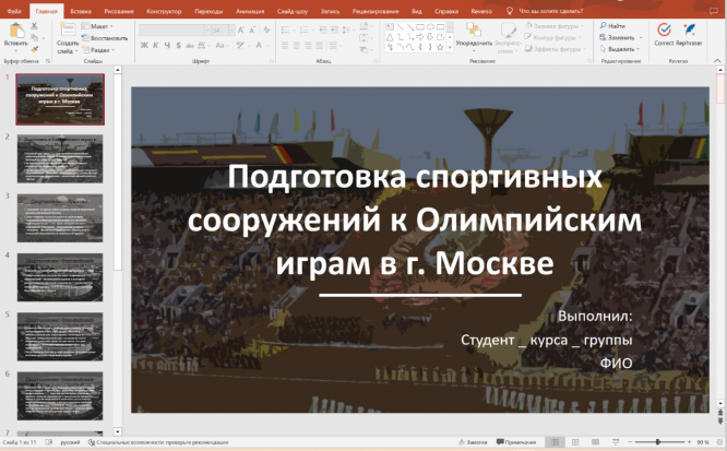 Презентация: Подготовка спортивных сооружений к Олимпийским играм в г. Москве