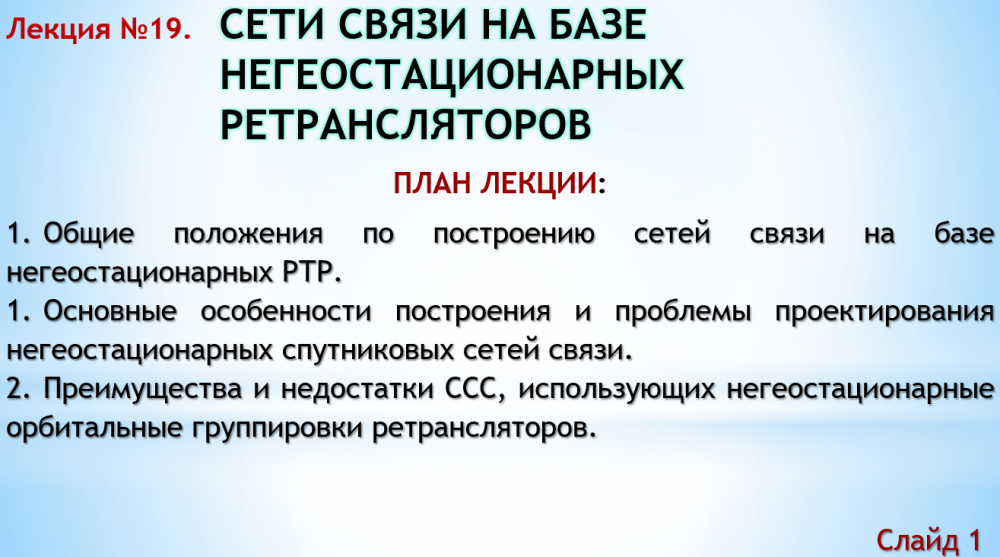 Для студентов МГТУ им. Н.Э.Баумана по предмету Спутниковые системы связи (СпСС)Сети связи на базе негеостационарных ретрансляторовСети связи на базе негеостационарных ретрансляторов