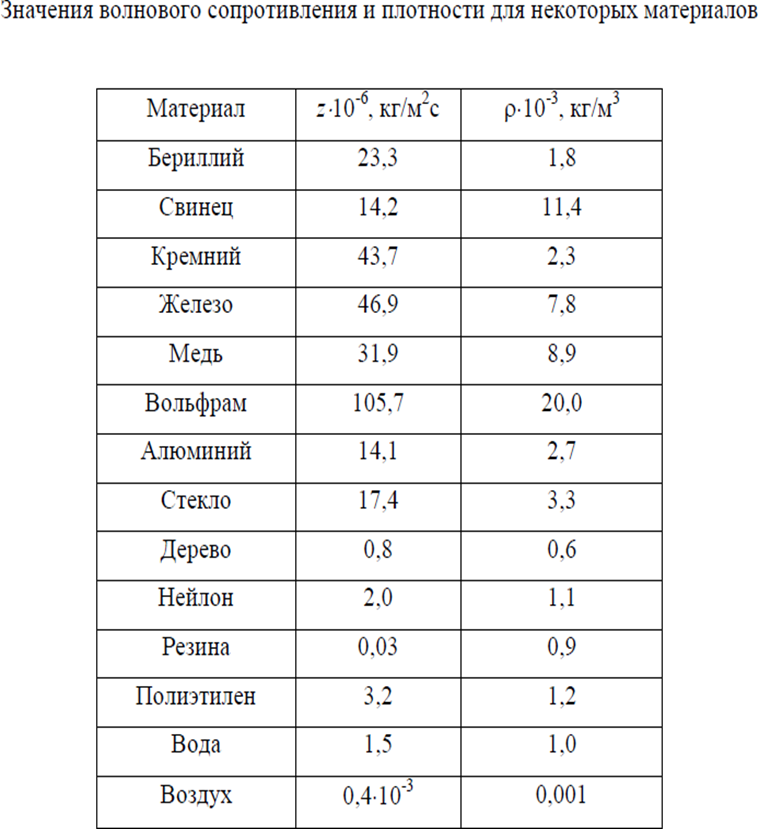 Рассчитать волновое сопротивление 𝑧3 для передачи акустической энергии без потерь из среды с волновым сопротивлением 𝑧1 в среду с волновым сопротивлением 𝑧2. Выбрать из справочной таблицы в приложении А материал, наиболее подходящий для согласования.